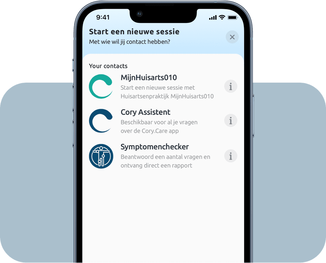 Via de Cory.Care app hebben patiënten snel toegang tot hun huisarts – voor vragen, herhaalrecepten, beeldbellen of het maken van een afspraak.